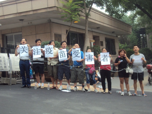 Yet another depressing moment in the saga of the families who came to Beijing looking for compensation from the Ministry of Health after their children where harmed by tainted vaccines. Shortly after their first protest, Wang reported via his blog, they were arrested, but were subsequently released and apparently went to protest again yesterday. The results were more dire this time: