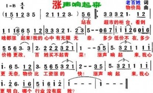 The song is a parody of an already well-known tune called “The Sound of Applause” (掌声响起来, listen here). The parody version is called 涨声响起来, roughly translated as “The Sound of Rising Prices.” Here’s one of many videos that’s been made already: