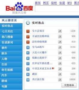 @ Kai. I don’t know, I just don’t think it’s feasible. SO MANY of the “top” stories on that list have numbers under 1,000. In a country with this many internet users, and in which Baidu dominates the search market, what would the point of even having this list be if 75-80% of the items on it were searched by such a tiny minority of people.